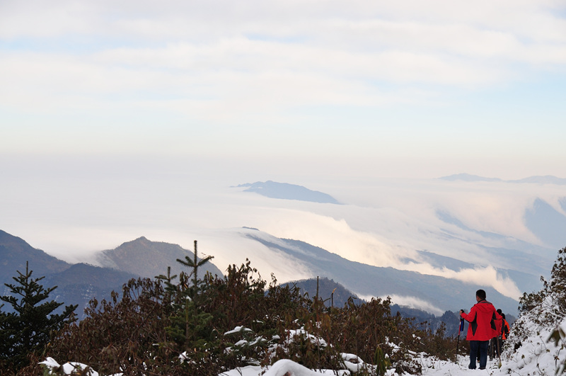 早上起床后都裹得厚厚的,準備下山,再見娘娘山!真想說句我還會在回來的!