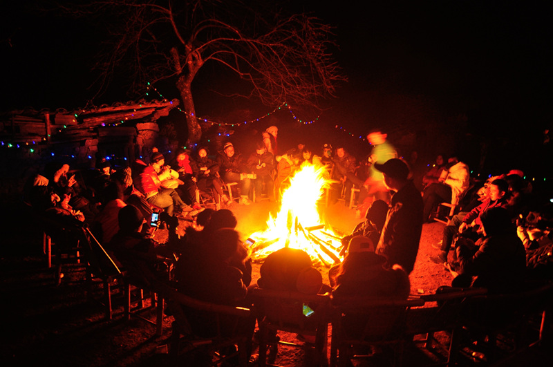 吃過晚飯后大家就去百年四合院等待篝火晚會,篝火正旺,大家在火堆前歡聲笑語分享著各自己故事
