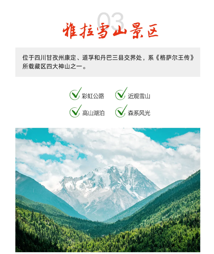 雅拉雪山獨特的造型,讓藏傳佛教信徒為她賦予了不一樣的神圣地位,如果天氣好,我們將在此盡情觀賞神山容顏,走進它的神話世界,感受它獨特的美。