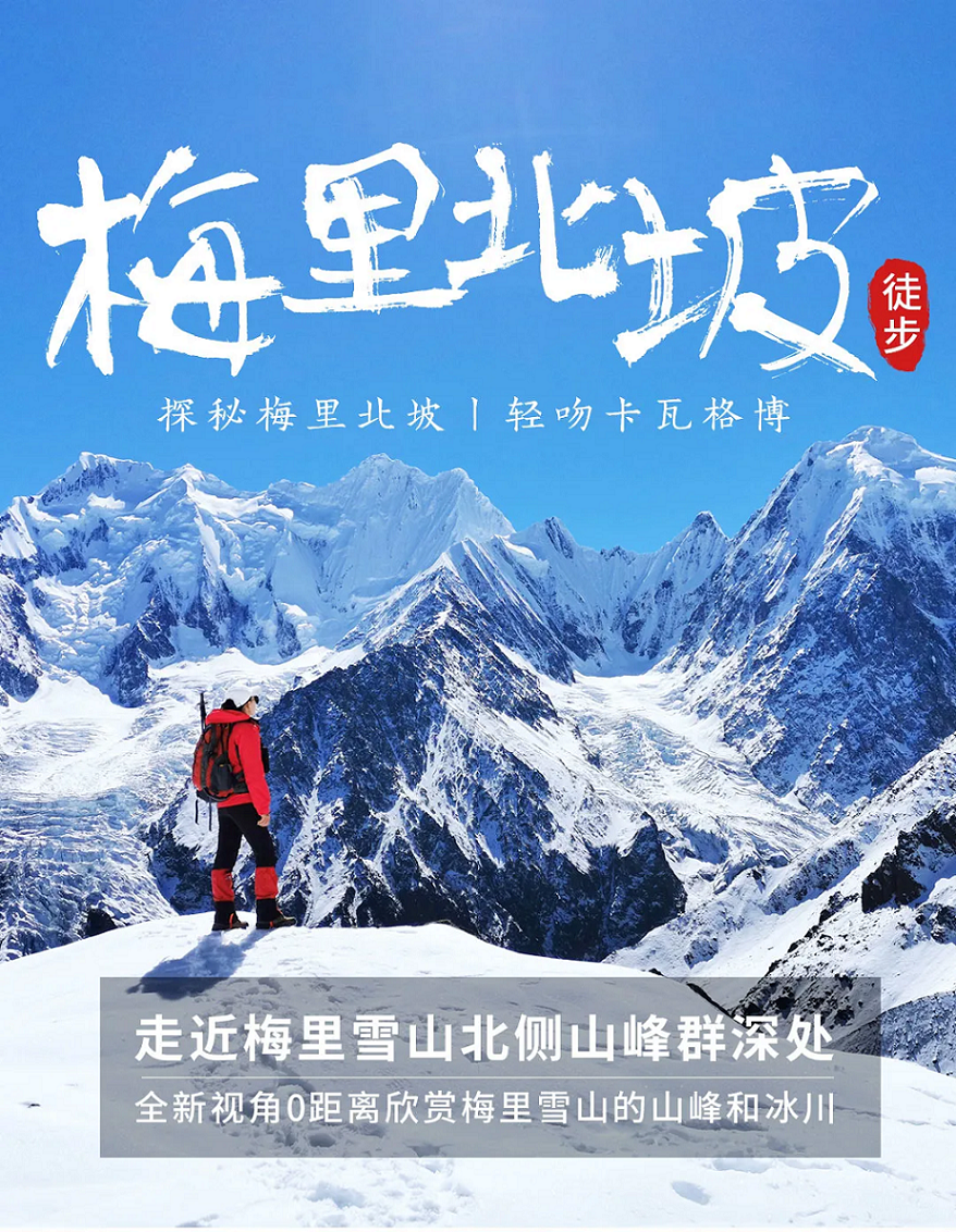 ?早上7點半起床,收拾帳篷和行裝,8點早餐后出發前往坡均營地。繼續沿著河谷前進,穿過一個大約3公里左右的原始森林,梅里雪山北坡主要山峰群就已經展現在眼前,再經過一個廢舊牛場,越過木橋,爬上山坡,奶日頂卡及其衍生冰川迎面而來。向著雪山繼續前進,很快便可到達坡均營地。營地正面就是梅里雪山北坡,奶日頂卡冰川、奶日頂卡、芒框臘卡等北坡主要山峰一覽無余。雪山冰川、白云藍天、河流草甸,還有悠然愜意的牦牛群,搭建好帳篷后,可以前往奶日貢卡冰川附近游玩拍照。今日全程無信號。