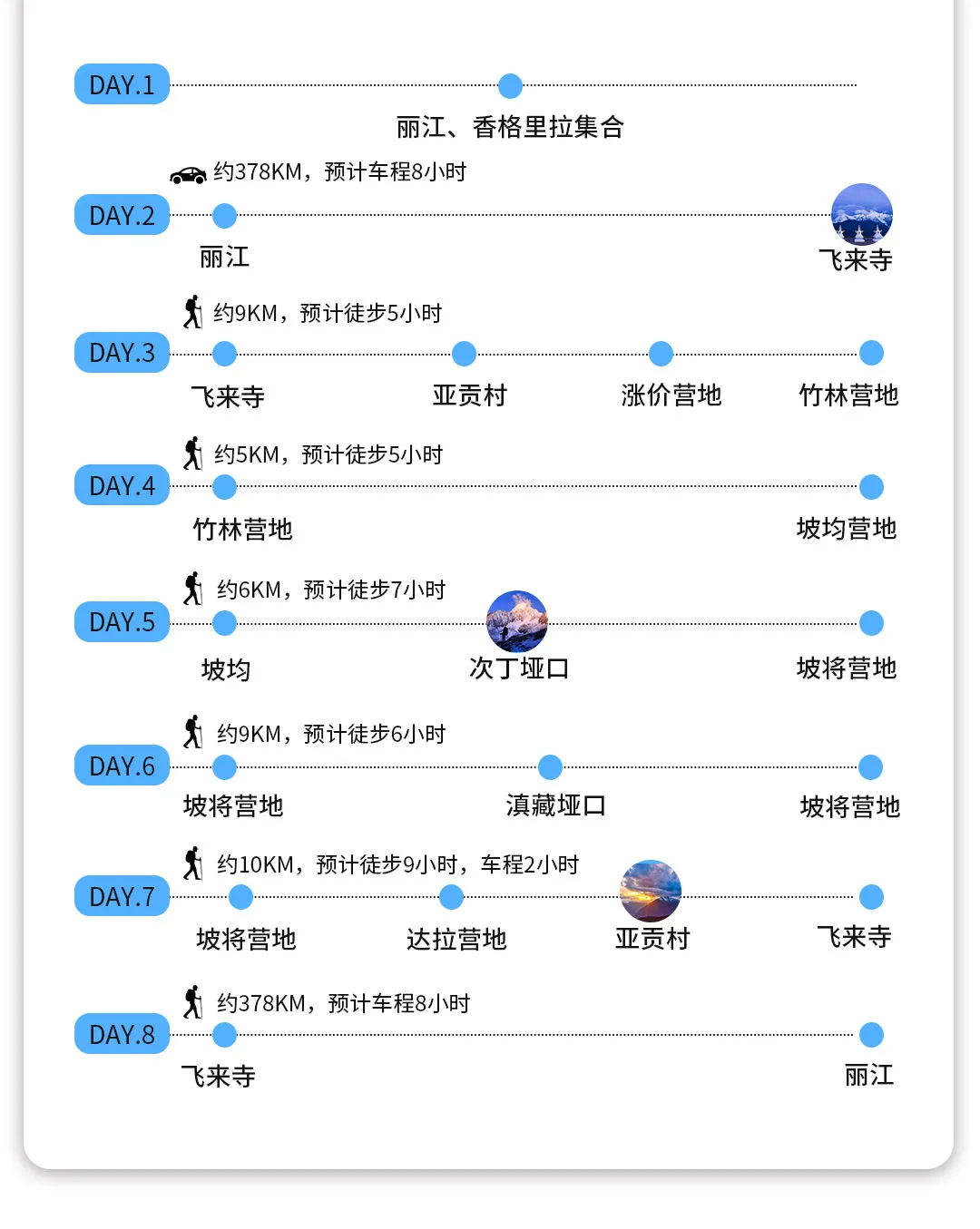 3、接送說明:出發集合點通常為“麗江古城大水車”,具體時間地點請以向導通知為準;