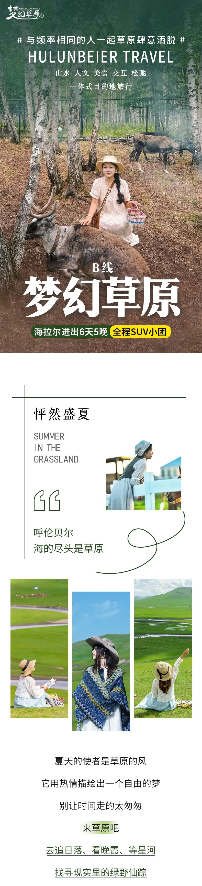 海拉爾---莫日格勒河(河畔遠眺小憩時光)(40KM,車程約0.5小時)---穿越草原腹地---敖魯古雅使鹿部落(230KM,車程約3.5小時)---根河