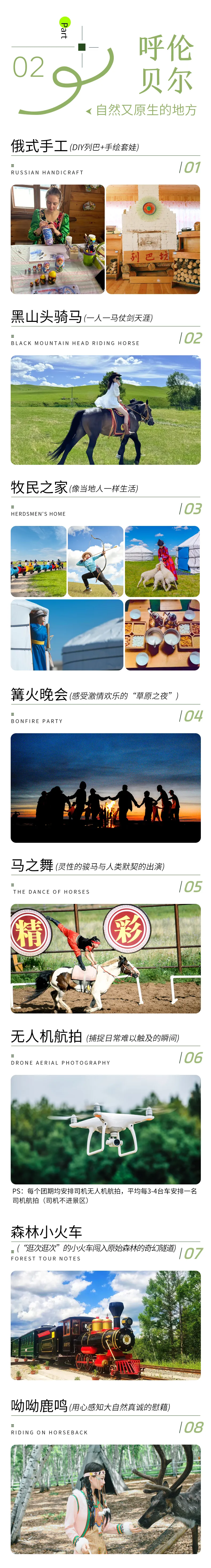 根河---莫爾道嘎森林小火車(128KM,車程約3小時)---恩和(119KM,車程約3小時)---DIY列巴---手繪套娃---落日香檳