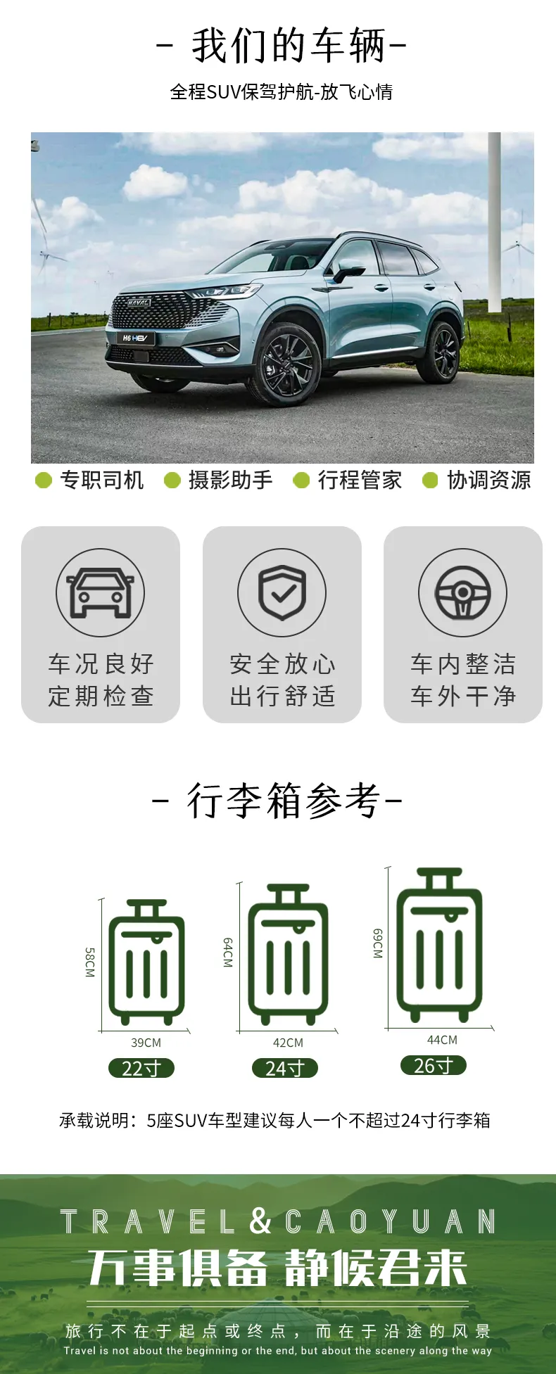 4、請每人攜帶24寸以下行李箱一個,如超出范圍可能造成無法放進車輛后備箱,望悉知