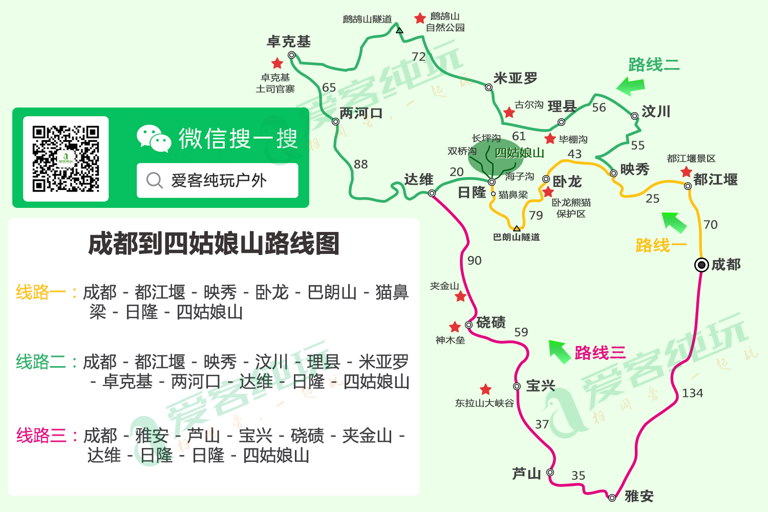更多四姑娘山的路線推薦和選擇,您還可以了解成都到四姑娘山怎么走。
