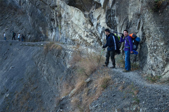 從鄧軍長家出來,第一段路就是一個巨大的考驗,幾十米高的懸崖,如果恐高的朋友,還是不要來體驗這段路了。
