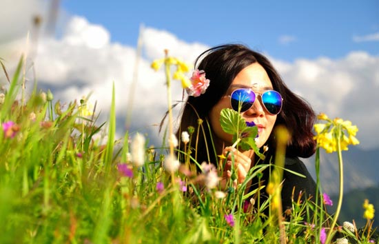 我們計劃的營地是雞抓棚,不是很遠,所以時間充足,我們就一路走,一路拍,在這個花的海洋里,美女們的心情那叫一個好呀!
