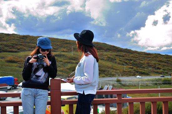 看完天葬天氣也是不錯的,這不,幾個妹紙開始自拍了,這個裝備很齊全喲: