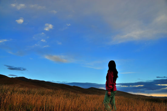 天空藍得醉人,大俠在草原上情不自禁的跳起了舞: